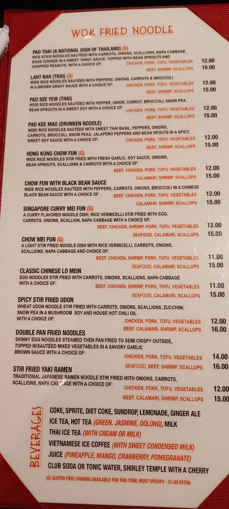 Wheat udon noodle stir-fried with carrots, onions, scallions, zucchini, snow pea in a mushroom soy and house hot chili oil with choice of protein.